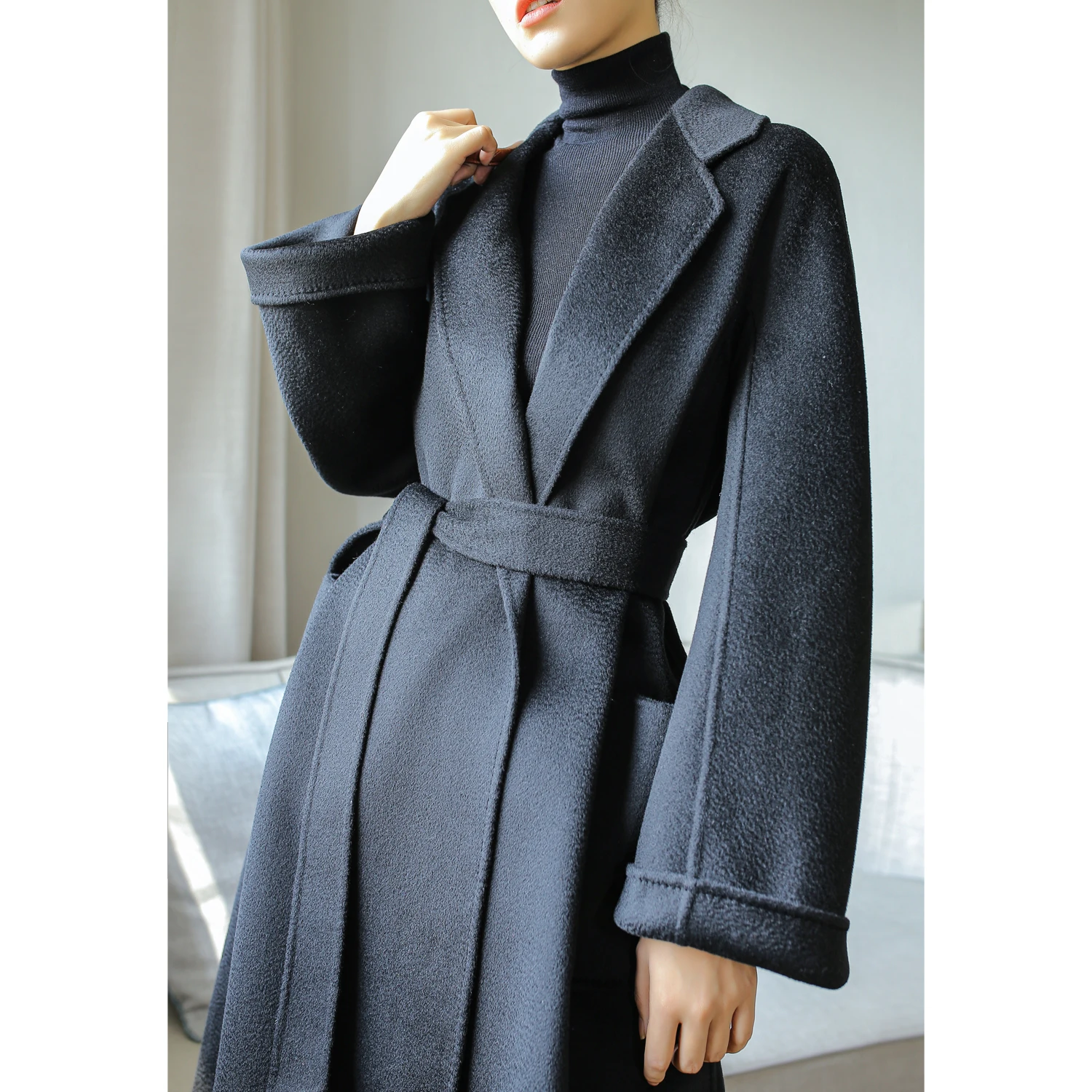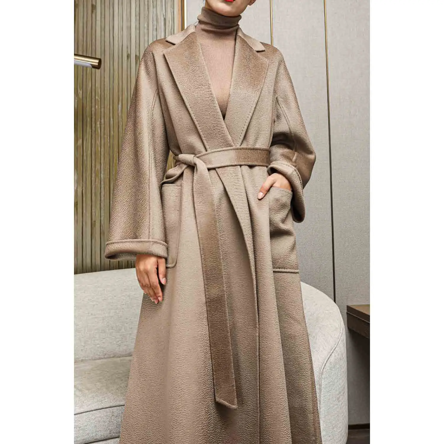 Specifications of High-end Reproduction of the Classic Large Umbrella Hem Bathrobe Caramel Color Reversible Water Ripple Wool Coat Fashionable