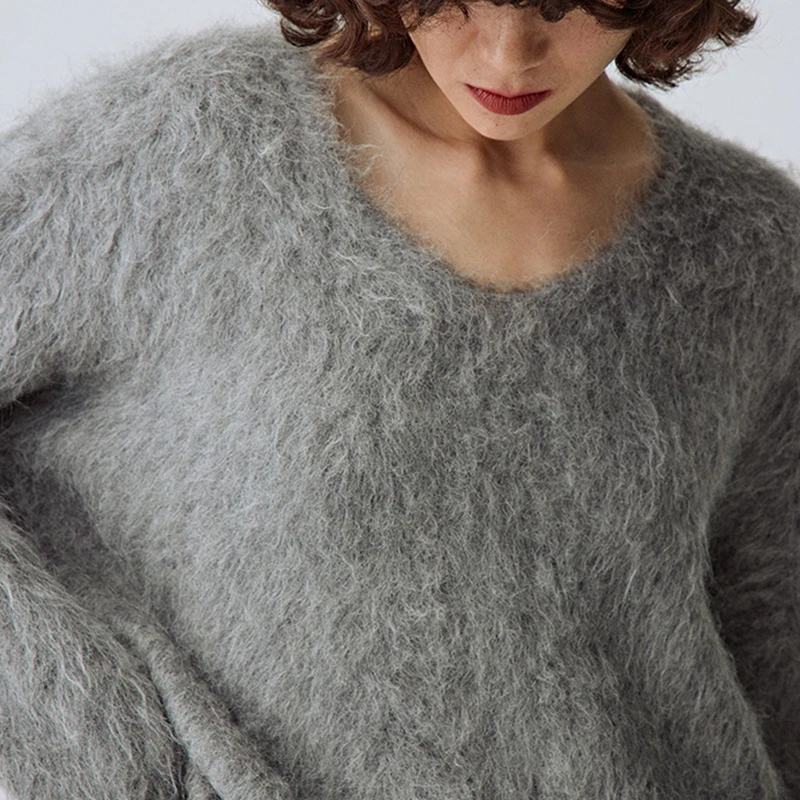 About Oversized V Neck Long Sleeve Pullover Knitted Cotton Sweater Women